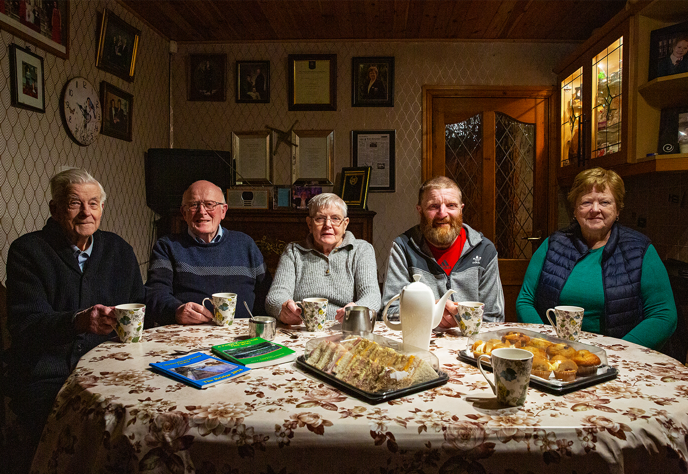 Residents of Coill Dubh Bord na Móna workers village built in 1952 and designed by Frank Gibney. Owen Denneny, Peadar Cosgrove, Josie Byrne, Ray Lenehan and Ann Moore, from the collaborative and community engaged project ‘Tóch | Dig’ (2024-present), 2025, 2025.