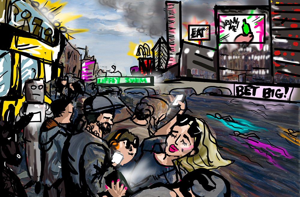 For this example, we've chosen to reimagine Jack B. Yeats's painting of the annual Liffey Swim race. He painted this work in 1923, but we're going to transplant the action to the future - to 2050!
